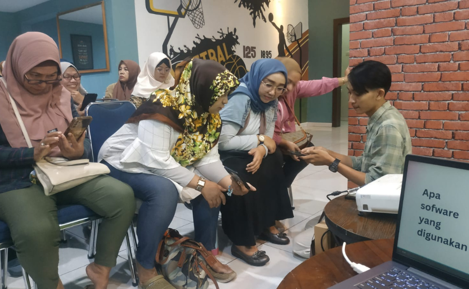 Pelatihan ini terasa hidup ketika praktik dilakukan secara langsung. Hermy mendemonstrasikan pemanfaatan AI TikTok, teknik dasar fotografi dengan grid kamera, penggunaan video stabilizer di Google Foto, hingga cara mengatur penjadwalan konten di Instagram dan TikTok.